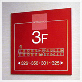 ビルの入り口やエレベーター脇にある「案内表示」から、各階にある「階数表示」やトイレなどで見かける「室名・ピクト表示」など、多数取り扱っております。