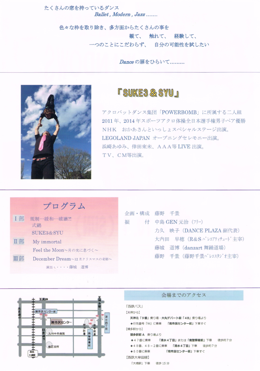 振付 : 力久 映子(DANCE PLAZA 副代表)、中島GEN 元治(フリー)<予定>、