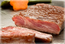 ひと口食べると口いっぱいにジューシーな味わいが広がり、最高級肉独特の甘みと旨みが堪能できます。